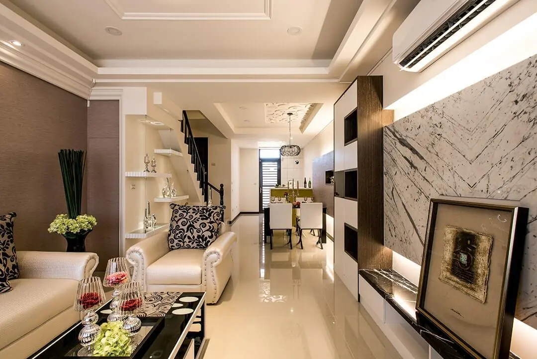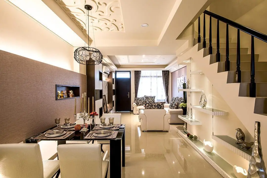 作品集 WORKER 首頁 作品集 住宅設計 精省好設計 百萬預算實現三代同堂別墅夢 精省好設計 百萬預算實現三代同堂別墅夢 住宅設計 格局 4層樓/5房2廳3衛 成員 三代同堂 風格 現代風 坪數 60坪 屋況 獨棟別墅 地點 桃園市觀音區 建材 木作工程、水電工程、油漆工程、仿大理石、烤漆玻璃、線板、木皮板、冷烤漆、壁紙、人造石、系統櫃、簍空雕刻板、繃皮 設計概念 DESIGN CONCEPT 新建案的初始概念,在實品屋落成那刻有了完美的定義呈現;高質感的黑白紋大理石電視牆,在兩側局部鏤空規劃的造型櫃體及上下燈帶修飾下,呈現品味不凡的入門風景,跳脫傳統思維,在樓梯下方除了保留部分空間作儲藏室規劃,另微內推局部牆面,結合U形浪板、鋼索與燈光增設迷人的展示端景。 四層樓規劃的透天別墅有充裕的空間尺度安排私領域格局,法柏設計在二樓主臥房巧妙混搭木工線板、系統櫃與灰鏡,形塑華美卻精省預算的設計巧思;作為長輩房的三樓主臥室則加添木皮元素,搭配現成家具構築沉穩氣息。較小空間的客房與小孩房,則分別運用造型櫃體及家具家飾的搭配修飾,達到空間感與完備機能的雙重期待。 ▼看更多三代同堂設計▼ 善用別墅垂直空間 三代同堂 保有隱密性 格局設計 Layout design Gallery not found. 前後比對 Before and after design 其他作品 現代北歐風|多功能質感宅 10坪小宅:裝下生活的所有美好 輕奢之境|藝術與質感的大器空間 現代北歐風|展現俐落感的寵物宅 現代感透天|打造時尚品味生活 清甜感十足!繽紛的北歐童話宅