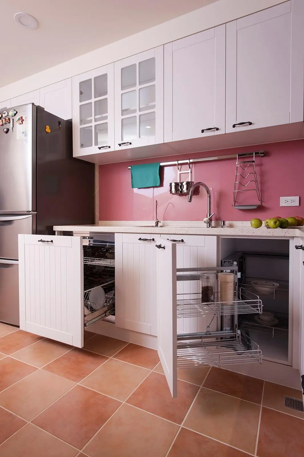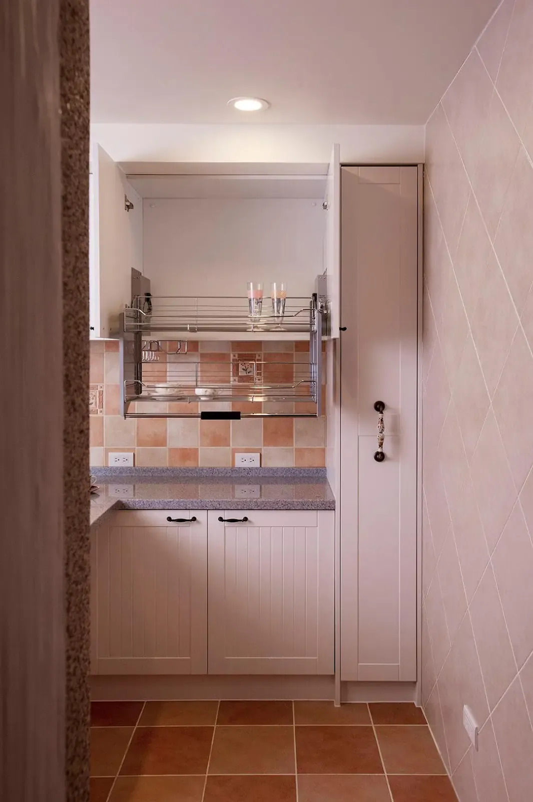 作品集 WORKER 首頁 作品集 住宅設計 夢幻廚房在我家!實現女主人嚮往的清新鄉村風 夢幻廚房在我家!實現女主人嚮往的清新鄉村風 住宅設計 格局 廚房、洗衣間 成員 夫妻 風格 鄉村風 坪數 6坪 屋況 中古屋 地點 新北市中和區 建材 泥作工程、油漆工程、西班牙進口磁磚、洗石子、人造石、烤漆玻璃 設計概念 DESIGN CONCEPT 對常下廚的人來說,最嚮往的莫過於擁有一間自在享樂的夢幻廚房,本案屋主在有限預算的情況下,為讓妻子有更好的烹飪環境,將舊屋進行局部裝修,僅對廚房空間進行翻新,打造出女主人夢寐以求的鄉村風格廚房。 以純白色為基調,加入鄉村風設計必備的元素,選用粉橘色系和灰色調的復古磚,鋪陳經典的棋盤和菱格紋圖案,帶來清新的鄉村風情。 體貼年長的屋主夫妻在生活上可能產生的不便,特別強調收納機能的設計,將常用的電器設備移至流理台下方,吊櫃採隱藏式下拉的收納設計,搭配多層側拉籃,讓取用物品時輕鬆省力;同時配置L型的中島,帶來輕食區和吧檯區機能,圍塑出國外雜誌常見的歐美廚房情境,實現夫妻倆夢想中愜意的退休生活。 ▼看更多鄉村風▼ 氛圍對了 整個家就完整了 格局設計 Layout design 前後比對 Before and after design 其他作品 現代北歐風|多功能質感宅 10坪小宅:裝下生活的所有美好 輕奢之境|藝術與質感的大器空間 現代北歐風|展現俐落感的寵物宅 現代感透天|打造時尚品味生活 清甜感十足!繽紛的北歐童話宅
