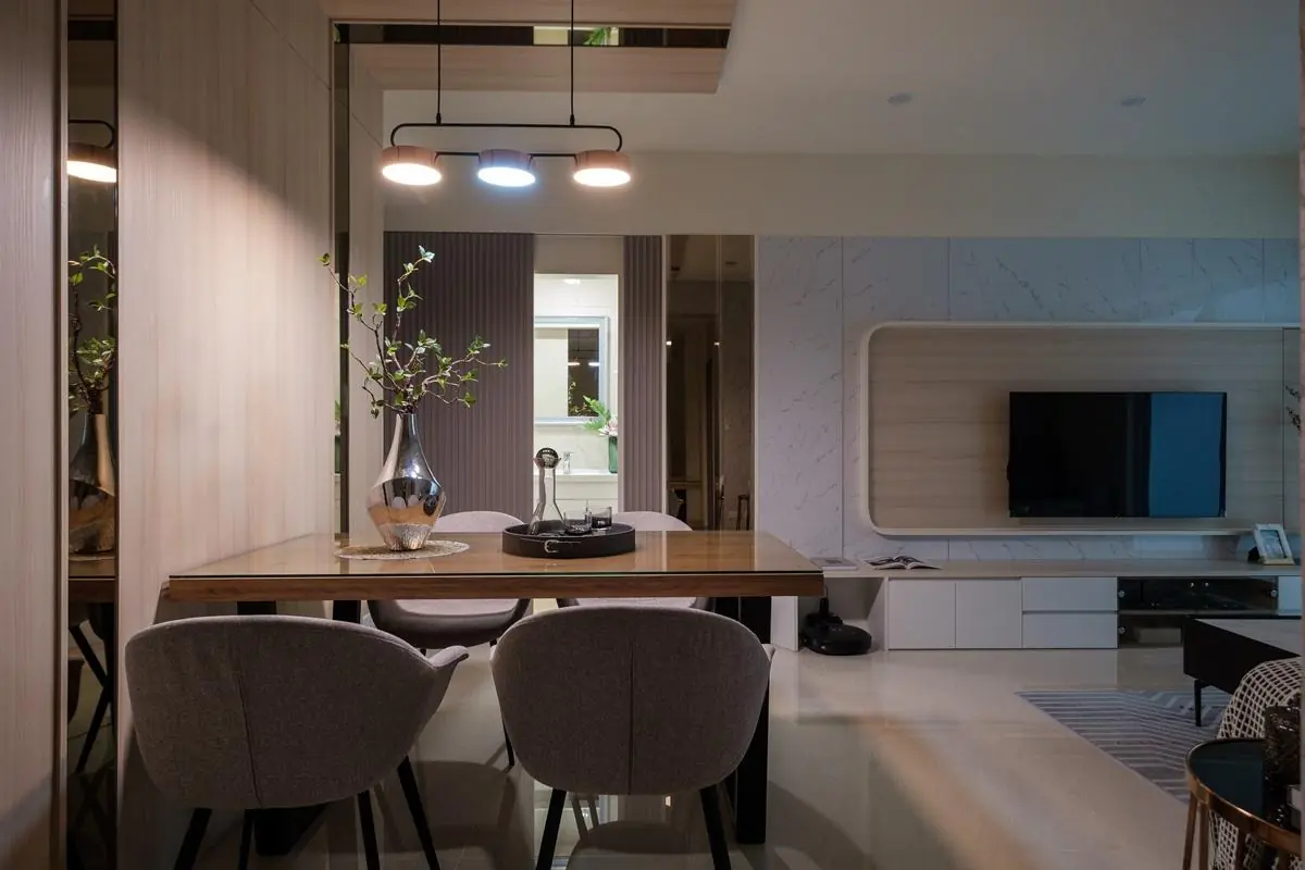 作品集 WORKER 首頁 作品集 住宅設計 異材質美學|現代輕北歐風格輕奢居家 BA 異材質美學|現代輕北歐風格輕奢居家 BA 住宅設計 格局 2層樓(B1-1F)/2房2廳1衛 成員 夫妻 風格 現代輕北歐風 坪數 屋況 中古屋 地點 新北市中和區 建材 木作工程、水電工程、油漆工程、系統櫃、造型天花、SPC木地板、乳膠漆、繃布、玻璃 設計概念 DESIGN CONCEPT 異材質設計巧妙劃分空間 秉持『簡而不減』的設計筆觸,捨棄繁複裝飾以避免視覺壓迫,為空間注入明亮俐落的現代北歐氣息 電視牆使用異材質展現出層次感,體現生活質感,並使用隱藏門巧妙隱藏浴廁;更特別為女主人量身打造專屬的夢幻粉紅廚房,讓下廚時光也充滿馬卡龍般的甜蜜儀式感,演繹出兼具個性與溫度的居家風景。 ▼使用異材質劃分空間▼ 馬卡龍色系打造甜美繽紛的家 開門 格局設計 Layout design 前後比對 Before and after design 其他作品 現代北歐風|多功能質感宅 10坪小宅:裝下生活的所有美好 輕奢之境|藝術與質感的大器空間 現代北歐風|展現俐落感的寵物宅 現代感透天|打造時尚品味生活 清甜感十足!繽紛的北歐童話宅