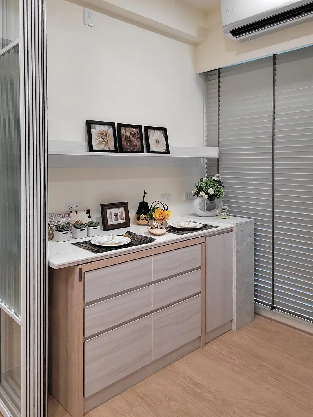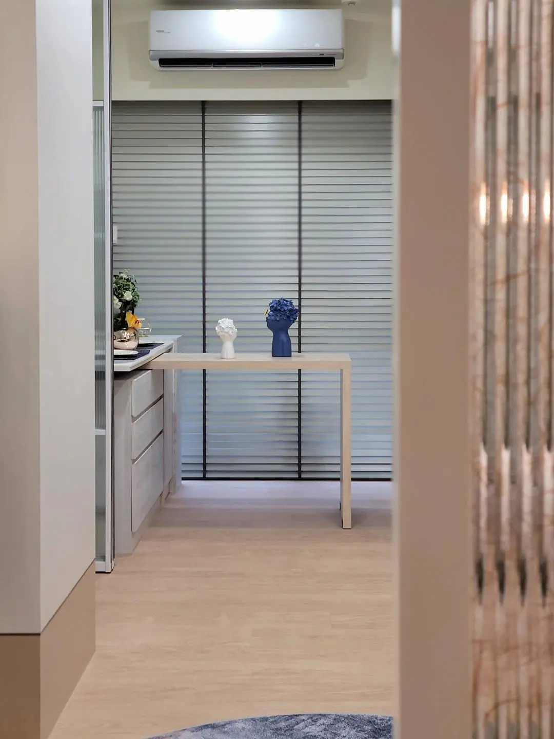 作品集 WORKER 首頁 作品集 住宅設計 以北歐靈魂構築無印風精緻美學 以北歐靈魂構築無印風精緻美學 住宅設計 格局 2房2廳1衛 成員 自住 風格 北歐風X日系無印風 坪數 15坪 屋況 新成屋 地點 新北市土城區 建材 拆除工程、木作工程、水電工程、油漆工程、窗簾工程、玻璃工程、進皮革板、鈦金屬飾條、鐵件烤漆、系統櫃 設計概念 DESIGN CONCEPT 精緻的都會小宅,靈活巧思設計,小宅也能擁有大空間,清新的北歐風融入日式無印風,充滿清新感!滿足退休屋主休憩時的獨居美居 ,隨心享受生活。 利用收納系統櫃取代電視牆 備餐中島桌可收納移動,不佔空間 在視野最佳的地方打造多功能和室和步入式衣櫃 ▼更多精緻小宅▼ 現代北歐風|展現俐落感的寵物宅 格局設計 Layout design Gallery not found. 前後比對 Before and after design 其他作品 現代北歐風|多功能質感宅 10坪小宅:裝下生活的所有美好 輕奢之境|藝術與質感的大器空間 現代北歐風|展現俐落感的寵物宅 現代感透天|打造時尚品味生活 清甜感十足!繽紛的北歐童話宅