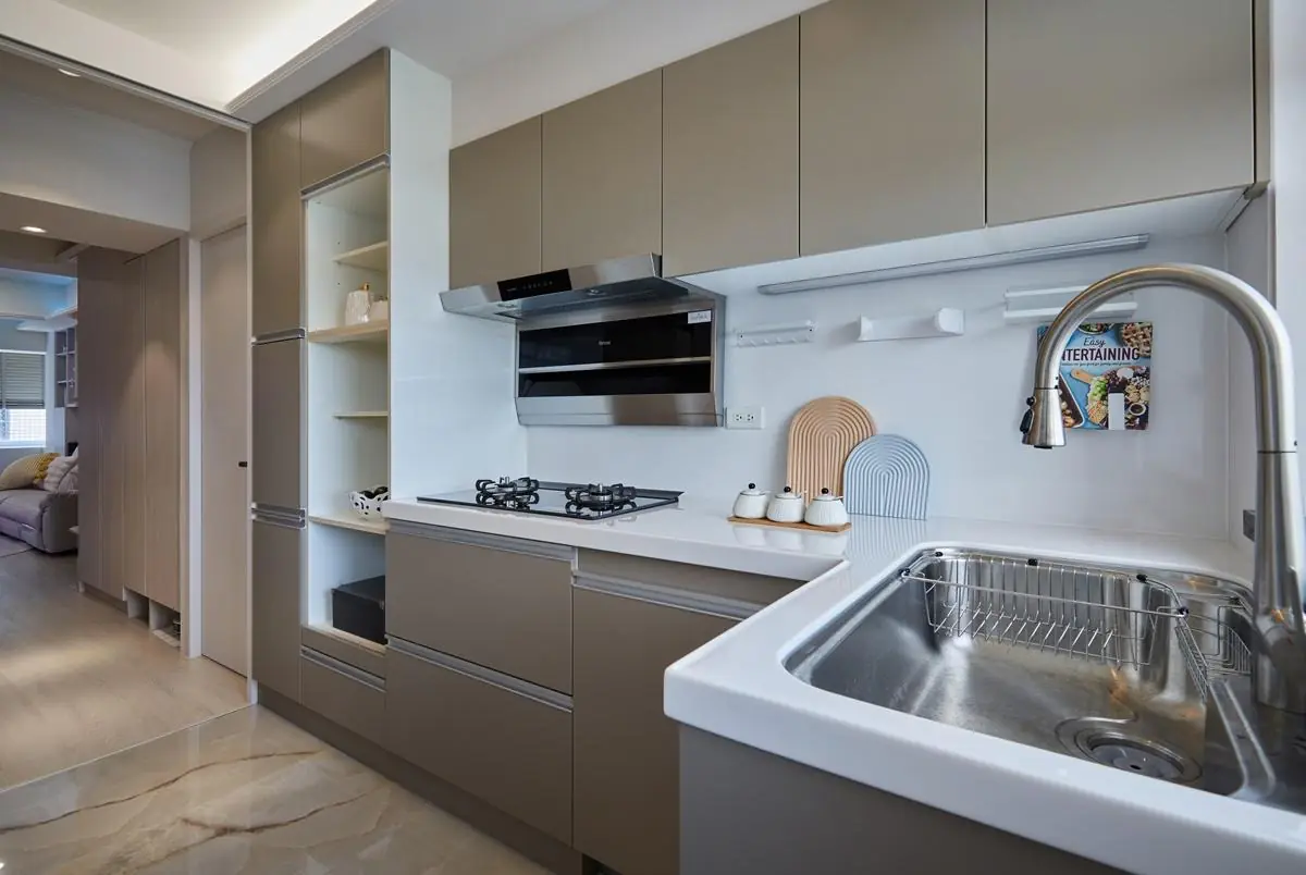作品集 WORKER 首頁 作品集 住宅設計 讓生活更便利 Japandi風智慧宅 讓生活更便利 Japandi風智慧宅 住宅設計 格局 3房1廳2衛1儲藏室 成員 夫妻 風格 Japandi風 坪數 25.5坪 屋況 中古屋 地點 新北市中和區 建材 拆除工程、木作工程、水電工程、泥作工程、油漆工程、衛浴/廚具工程、系統櫃、SPC石塑地板、造型天花、磁磚、鐵件屏風、隱藏門片、升降桌、鋁門窗、智能燈光 設計概念 DESIGN CONCEPT 智慧宅設計讓生活更便利,更成為趨勢 屋主為年輕的小夫妻,喜歡北歐及日系風格,講求生活質感、儀式感及便利性,因此設計師採用了Japandi風,除了日式揉合北歐,更能夠表現出在智慧生活底下追求的寧靜氛圍。 並採用大量的智能系統,各種智慧家電、燈光、窗簾等,並大膽採用洞洞牆面增加收納以及可以讓小夫妻隨心所欲的搭配,還為了喜愛羽球的男屋主貼心設計了球拍的家,以及未來家中寵物的用餐區,隨處可見設計師的巧思 情境燈光會自動變色 利用洞洞板垂直收納屋主夫婦的運動用品 ▼ 來看看暖調的奶茶宅 ▼ 來杯暖色特調|高顏值奶茶宅 格局設計 Layout design Gallery not found. 前後比對 Before and after design 其他作品 現代北歐風|多功能質感宅 10坪小宅:裝下生活的所有美好 輕奢之境|藝術與質感的大器空間 現代北歐風|展現俐落感的寵物宅 現代感透天|打造時尚品味生活 清甜感十足!繽紛的北歐童話宅