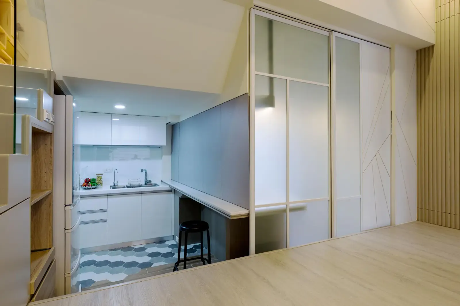 作品集 WORKER 首頁 作品集 住宅設計 清新日式幸福宅 小宅也能擁有4房 清新日式幸福宅 小宅也能擁有4房 住宅設計 格局 3+1房2廳2衛 成員 自住 風格 現代簡約風 坪數 15坪 屋況 毛胚屋 地點 新北市中和區 建材 拆除工程、木作工程、水電工程、油漆工程、泥作工程、空調工程、系統櫃、人造石、磁磚、玻璃、鋁框玻璃門、電動升降桌 設計概念 DESIGN CONCEPT 錯層設計讓小空間也能擁有多房間,清爽無壓是屋主對住宅的期許,打造清新的日系感,巧思設計收納也可以美化空間,錯層設計將空間放大及多功能使用 ▼看更多小宅設計▼ 積木堆砌的家,童趣、工業感兼具 格局設計 Layout design 前後比對 Before and after design 其他作品 現代北歐風|多功能質感宅 10坪小宅:裝下生活的所有美好 輕奢之境|藝術與質感的大器空間 現代北歐風|展現俐落感的寵物宅 現代感透天|打造時尚品味生活 清甜感十足!繽紛的北歐童話宅